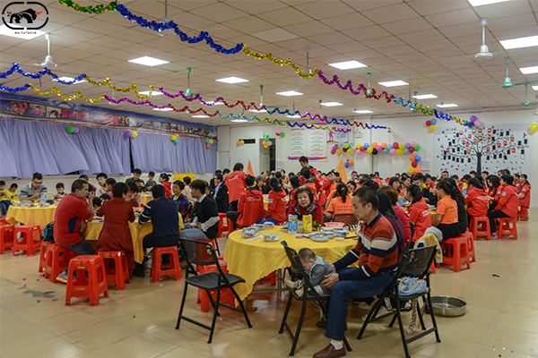 年會(huì)在下午三點(diǎn)多就以精彩的舞獅開(kāi)始了,場(chǎng)面宏觀壯大,睿牛家人身穿紅色廠服圍觀,敲鑼的敲鑼?zhuān)蚬牡拇蚬模Y炮熊熊“燃燒”,大獅子血盆大口一張一合,盡情擺動(dòng)它那幾根柔軟的胡須,大家都喜笑顏開(kāi)跟著獅子看熱鬧!