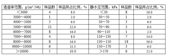 3.1 透濕率、靜水壓測試結果分布