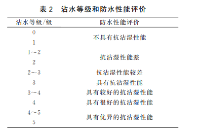 另外還有沾水等級(jí)檢測(cè)。沾水等級(jí)是指沖鋒衣面料表面抵御羽絨潤(rùn)濕的能力。具體檢驗(yàn)方式是取一定量的水噴淋檢驗(yàn),通過觀察對(duì)比確定面料的沾水等級(jí)。沾水等級(jí)以及防水性能評(píng)價(jià)表見下圖: