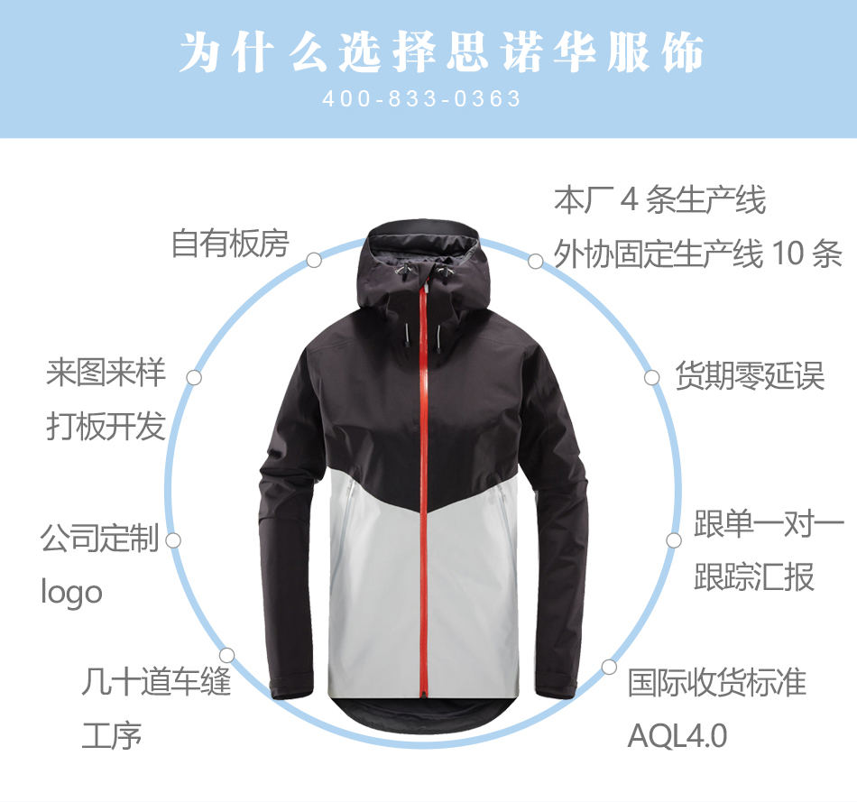 睿牛戶外服飾—沖鋒衣加工廠家來圖來料單層沖鋒衣加工