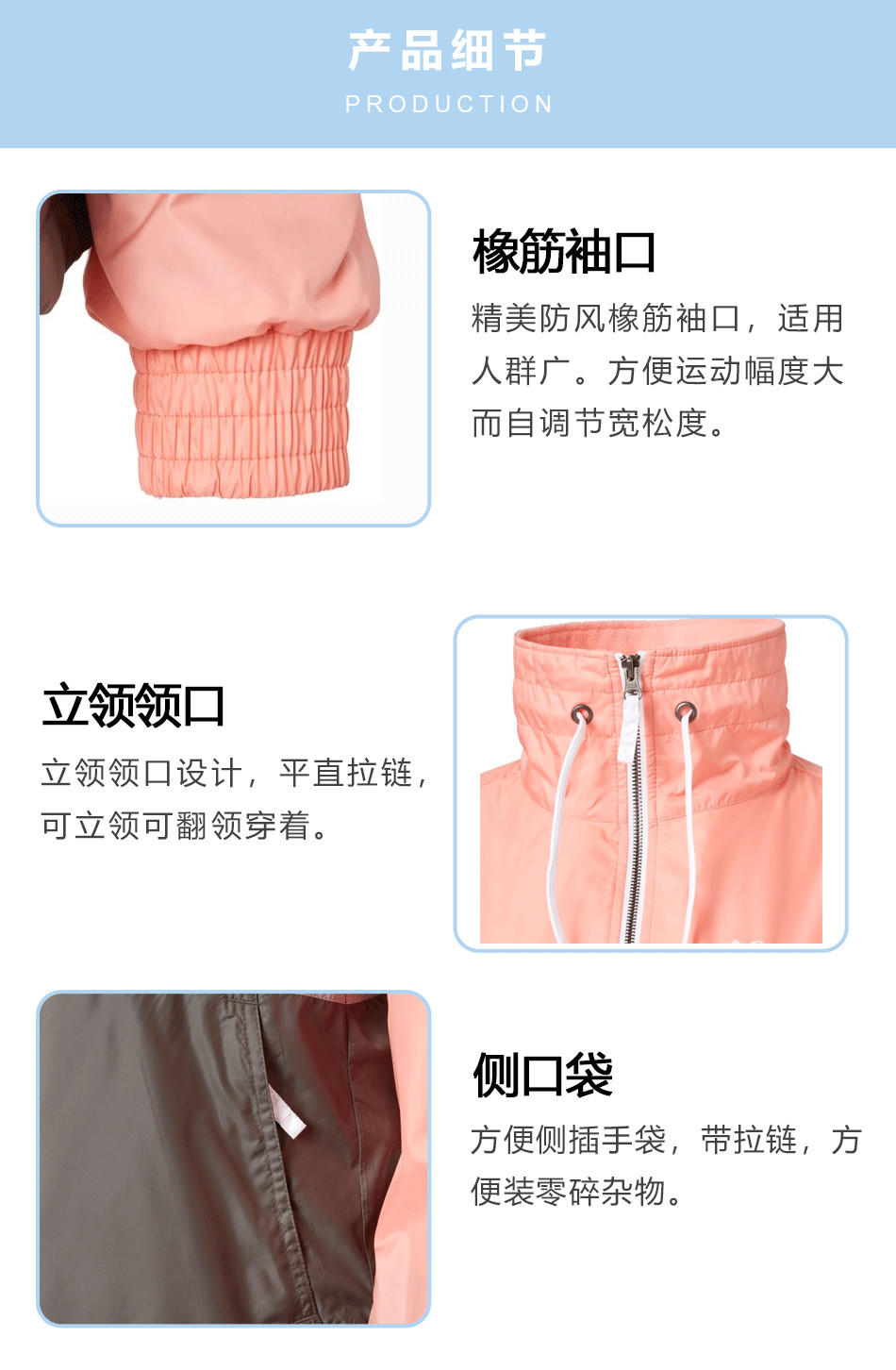 橡筋袖口:精美防風袖口,使用人群廣,可根據定制設計,專業風衣生產代工廠家